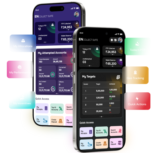 Built for collectors on the move, ENCollect Pro is sleek, beautiful, and a joy to use. Create your own workspace, get smart nudges that guide your day. No clutter, no confusion. Just one app that helps you beat your targets, one day at a time.